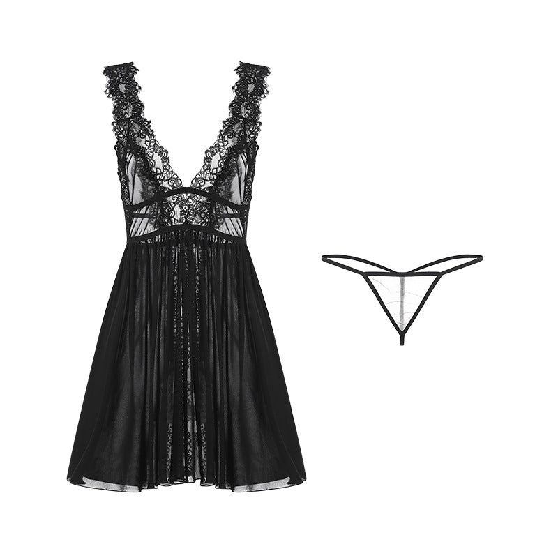 Indulge in pure seduction with our Sheer Mesh Lingerie Set, featuring a deep V-cut, open-slit babydoll that highlights your natural curves with confidence and allure. The see-through mesh fabric offers a soft, breathable touch, creating a perfect balance between temptation and elegance.